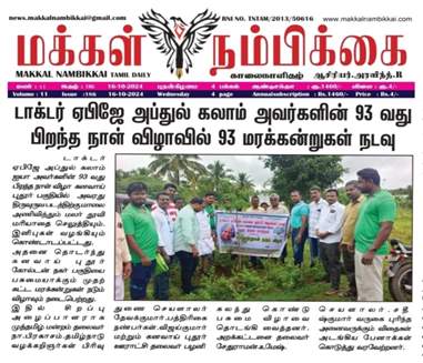 நமது பாரதத்தின் முன்னாள் ஜனாதிபதியும் தமிழகத்தின் ஏவுகணை நாயகன். இளைஞர்களின் விடிவெள்ளி யாக இன்றளவும் இருக்கும் டாக்டர் ஏபிஜே அப்துல் கலாம் ஐயா அவர்களின் 93 வது பிறந்த நாள் விழாவில் 93 மரக்கன்றுகள் நடவு செய்தனர்